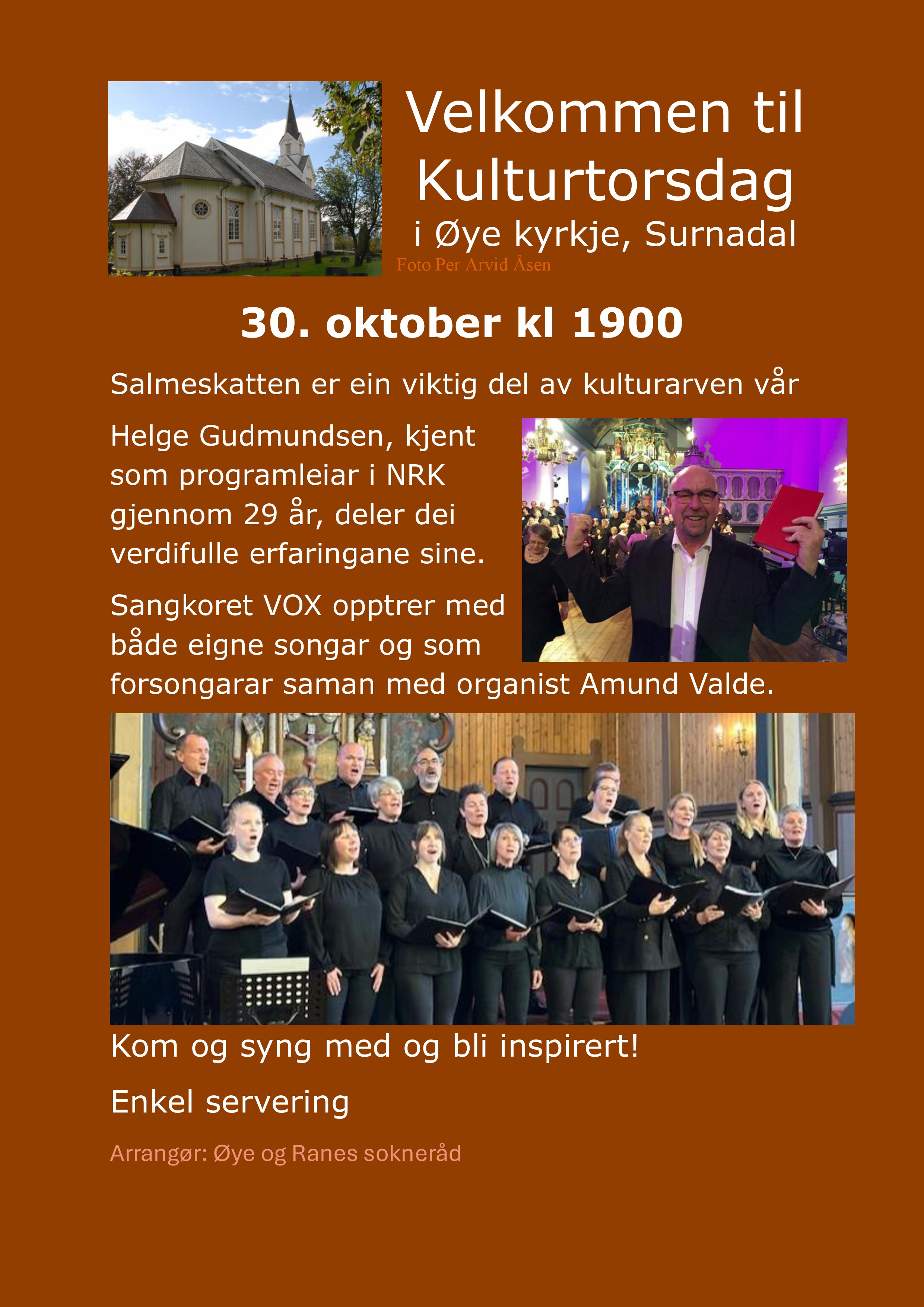 Øye og Ranes sokneråd inviterar til Kulturtorsdag