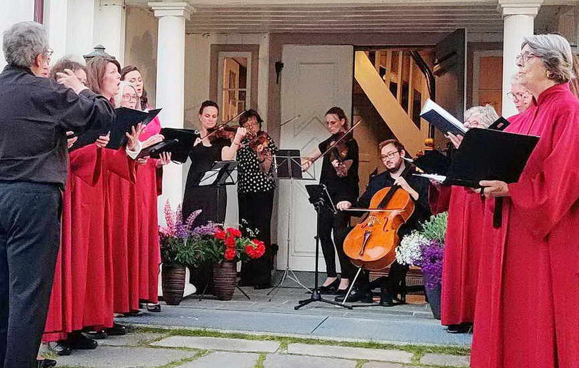 Midtsommarkonserten Jonsvaka har vore arrangert i over 40 år, gjerne med avslutning som her, på kyrkjetrappa. Foto Mali Settem